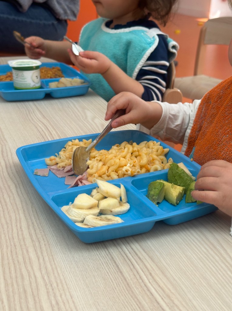 Depuis quelques années, la mise en place du plateau-repas en tant qu’outil pédagogique a vu le jour. C’est un moment apprécié de tous, enfants et professionnelles. Tout le monde prend plaisir à manger, à gérer son repas comme il le souhaite. Un vrai moment de liberté, de curiosité et de réelle autonomie !
